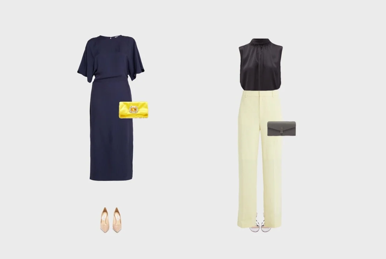 Footwear and Bags: Comfortable yet stylish shoes like wedges or heeled sandals are key, especially for outdoor settings. Your usual bag can work if it's on the smaller side.