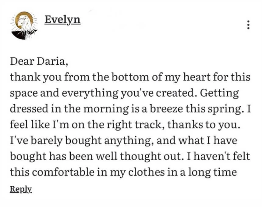 This gives you enough time to complete your wardrobe transformation at your own pace, with guidance available every step of the way.