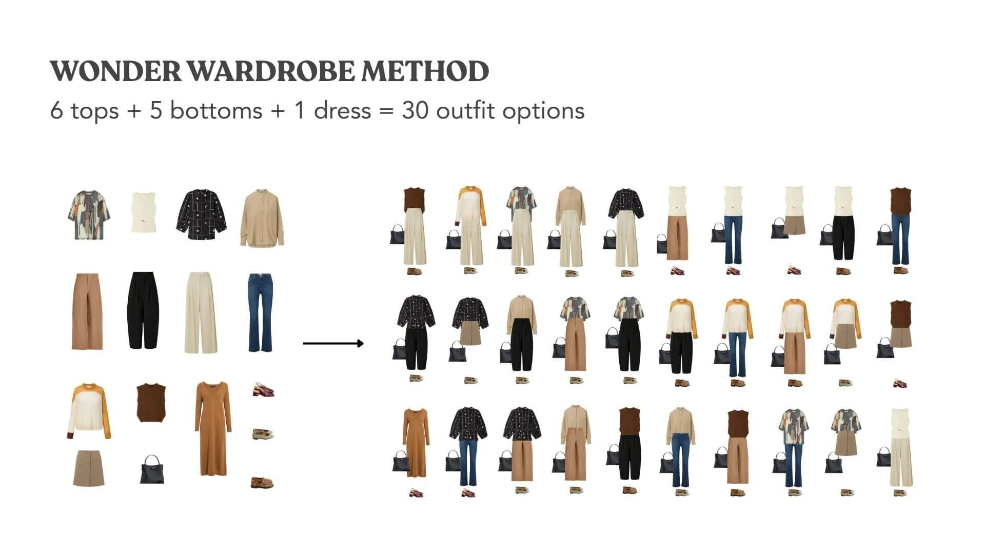 You'll create 100+ outfits from 30 pieces. Getting dressed becomes effortless, quick and joyful.